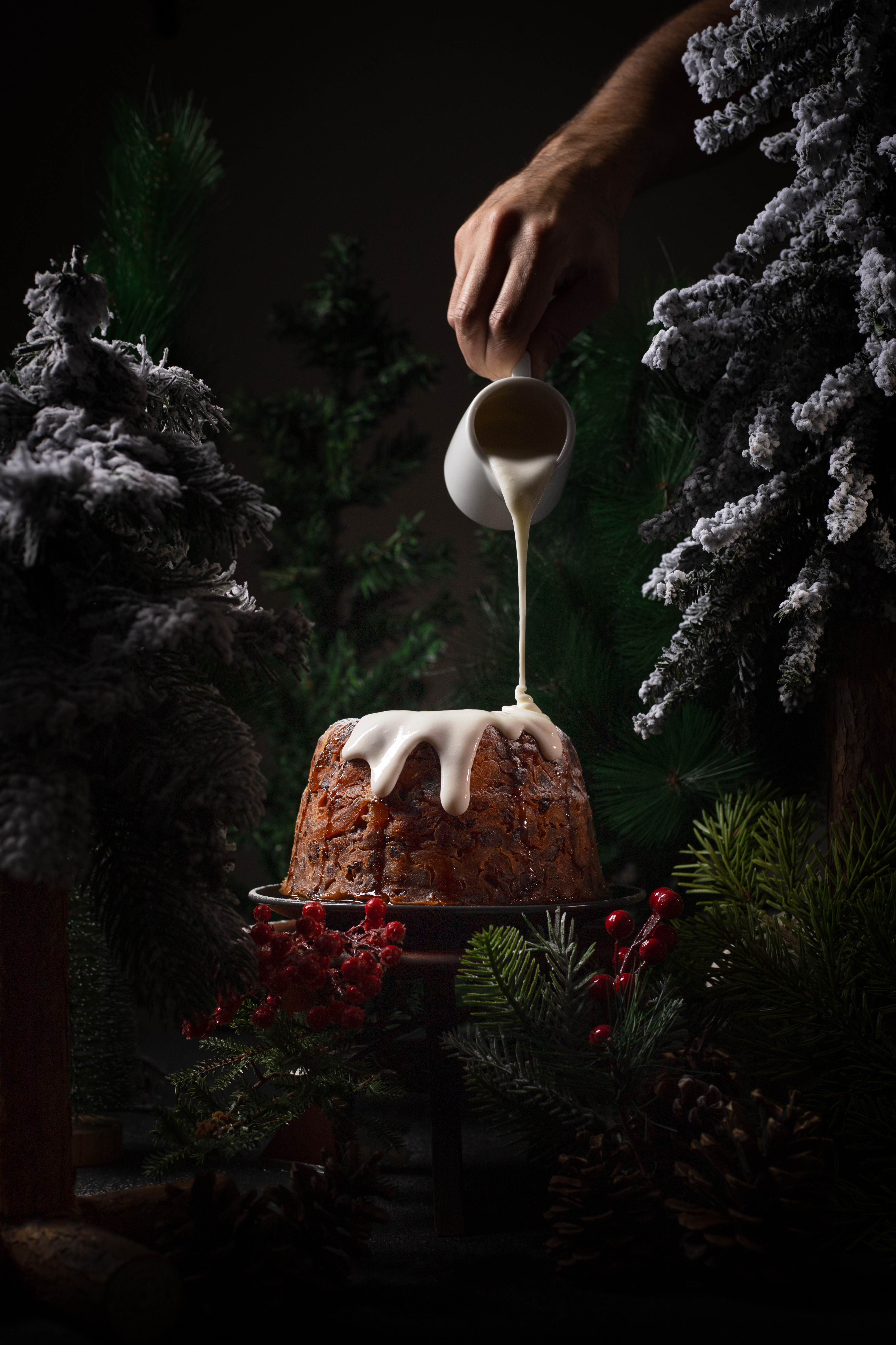 - Enjoy your non-alcoholic Christmas pudding with any of the dressings listed above. Or go traditional and light up some alcohol and pour it over this baby!